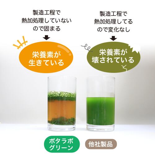 一般的に販売されている青汁や野菜ジュースは、加熱処理されていることが殆どで、大切な栄養素は死んでしまっています。