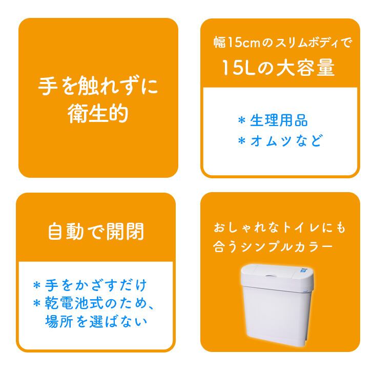 サニタリーボックス ノンタッチサニタリーボックス 消臭袋&消臭剤付き センサー