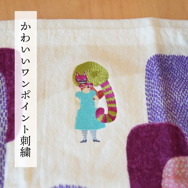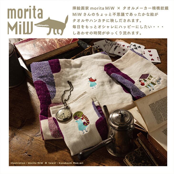 やさしく撚った糸でふわっと織り上げたガーゼ・パイルのタオルです。MiWさんの不思議であったかな世界をプリント、刺しゅうに・・・。